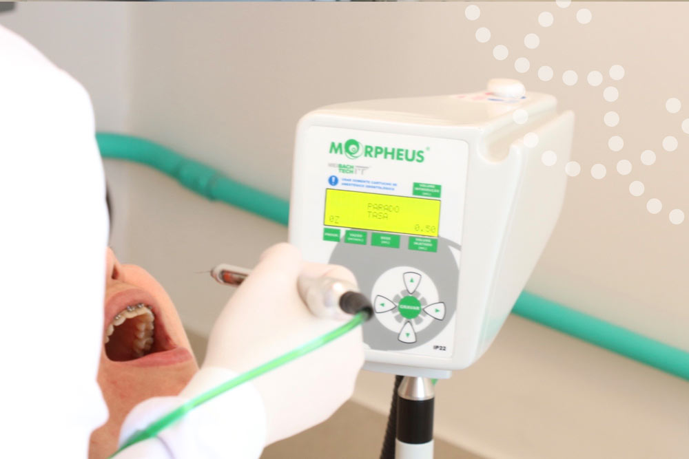 Sempre pensando no conforto e bem-estar de nossos pacientes, utilizamos o Morpheus. Uma estação injetora computadorizada de anestesia que permite a aplicação do anestésico lentamente, sem a pressão da injeção manual, que reduz os incômodos como inchaço e dormência na língua e lábios. Além disso, a dosagem é menor, exata para cada procedimento, promovendo maior segurança e menor toxicidade ao paciente.